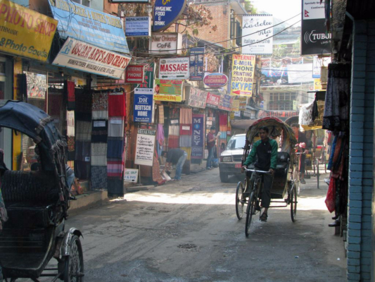Majatalolle vievän kujan varressa oli internet-kahviloita, jotka olivat 00-luvun keskeisiä palveluita. Siinä oli myös parturi, johon menin hiustenleikkuuseen. Naapurituolissa vaihtui porukka tiheään, mutta minun tukkaan käytettiin noin 45 minuuttia. Suurin piirtein saman verran oli toive maksusta. Lopputulos oli hyvä ja käytetty aika oli pitkä, joten hövelisti maksoin 100 NRs, eli noin euron verran. Tätä halvemmalla olen käynyt parturissa vain Saharan pohjoislaidalla 90-luvulla, jolloin maksu oli puolen euron luokkaa.