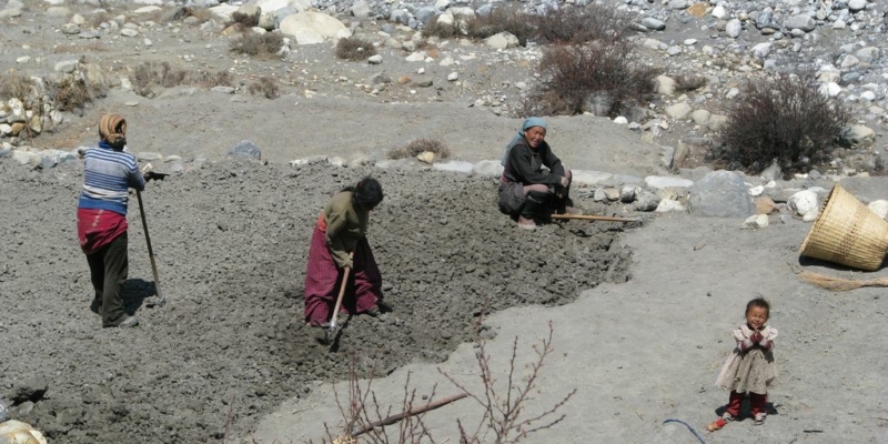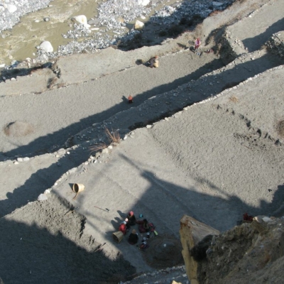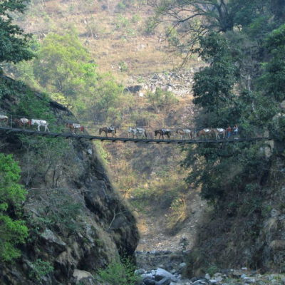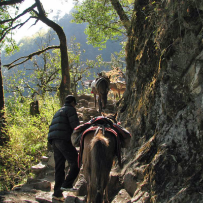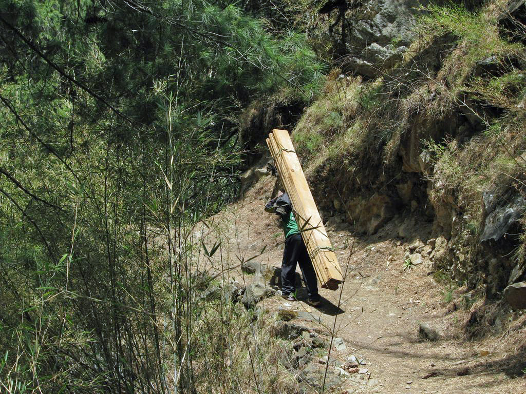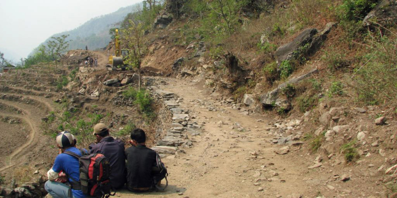 Aamulla alkoivat kouluaskareet ja me aloitimme kävelyurakan. Alkumatkasta oli ajokelpoista uraa ja hetken kuluttua saavutimme kaivukoneen. Se raivasi vanhan polun pois ja levensi samalle paikalle maastoautotien. Polulla kohtasimme usein aasikaravaaneja, jotka kulkivat reittiä joko täydessä lastissa tai tyhjänä. Autotien tavoitteena on luonnollisesti päästä karavaaneista eroon, jotta kuljetuskustannukset saadaan pienemmiksi. Paikallisten aasinajajien tulot romahtavat. Muualla asuvien auton ja kaivinkoneen omistajien tulot kasvavat.