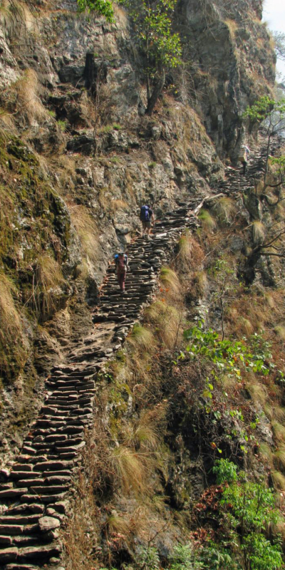 Koton ja Metan välillä oli rakennettu pelkästään matkailun edistämiseksi pitkiä osuuksia kallioon koverrettuja polkuja. Oli myös suojahuoneita ja leiripaikkoja. Tämä osuus on jäänyt mieleen aika vaativana osuutena, nousua noin 1 km ja kesto 8,5 tuntia.