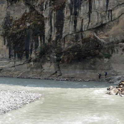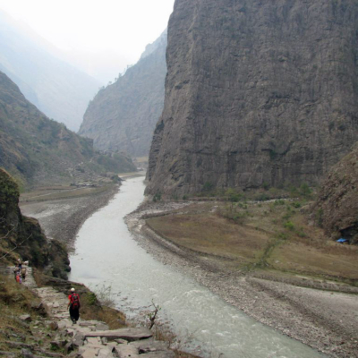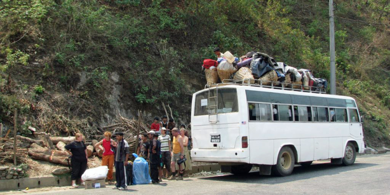 Tavoitteena oli ajaa bussilla Arughatiin, kävellä Budi Gandakia seuraillen latvavesille, ylittää Larkey La ja jatkaa edelleen Marsyangdin vartta. Jo bussimatka Arughatiin heikkokuntoista uraa pitkin oli jännittävä, kun auton akseli irtosi kesken kaiken. Saavuttiin kuitenkin valoisaan aikaan perille ja jäätiin yöksi koulun pihan viereen.