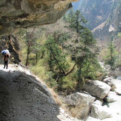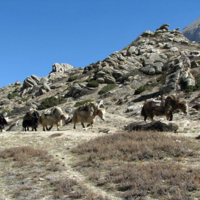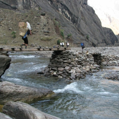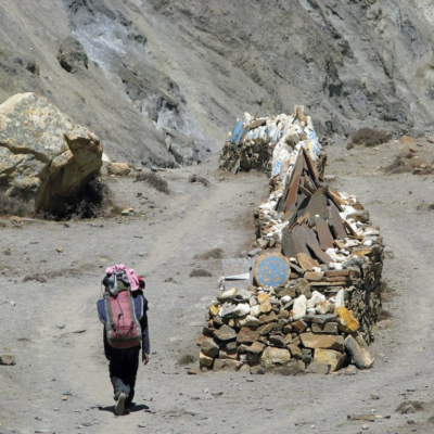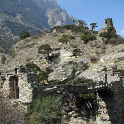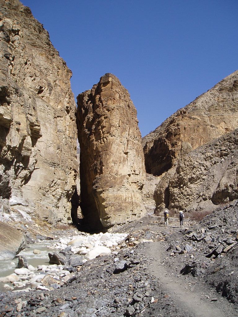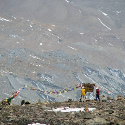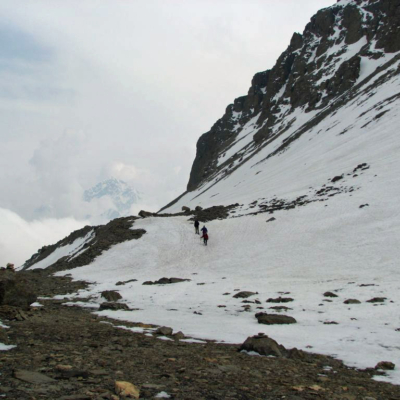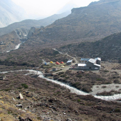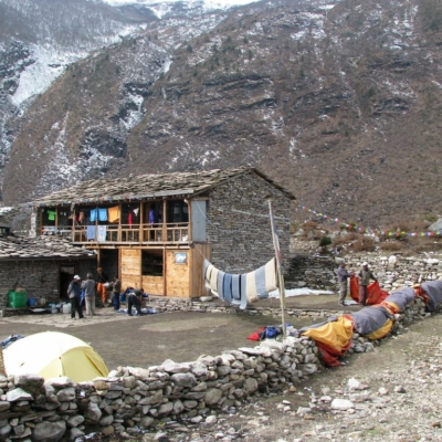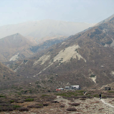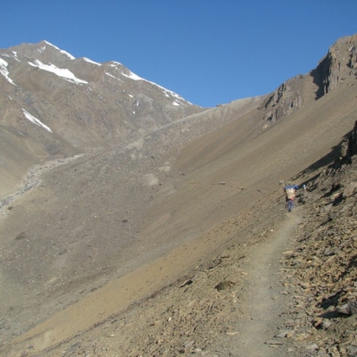 Khangsarissa yövyimme majatalossa. Siitä kävelimme hyvin merkattua polkua Tilichon perusleiriin, jossa yövyimme teltoissa. Polku meni sorarinteiden kautta, mutta oli ihan turvallinen. Maisema oli ensiluokkainen.