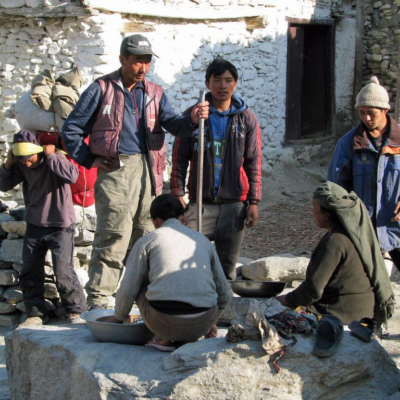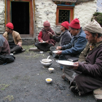 Vanha viisaus on, että aina kannattaa pitää juhlat kun on tilaisuus. Arughatin kylässä pidimme välikekkerit, koska joukko harveni. Vuoripolkujen rasitus oli yksille polville liikaa. Itse yritin etsiä kylässä sitruunamehua koska jostakin syystä mieleni teki ginlemonia. Löytyi joku vanha tiivistemehupullo ja paikallista huonolaatuista viinaa.