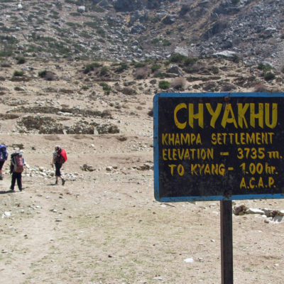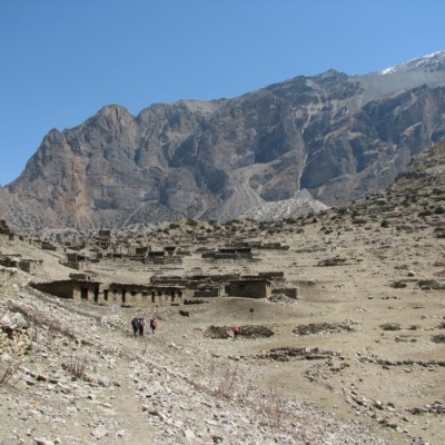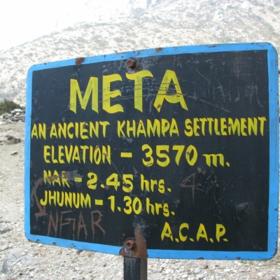 Meta, Chyakhu ja Kyang ovat vanhoja khampojen asumuksia. Tiibetin miehitystä vastustaneita bhoteja pakeni näille rajaseuduille. Täältä käsin he terrorisoivat miehittäjiä. 1970-luvulla jenkkien tavoitteena oli hankkiutua parempiin väleihin kiinalaisten kanssa, joten he maksoivat Nepalin hallitukselle khampa-asumusten tyhjentämisestä. Rajaseudun levottomuudet olivat myös este turismin kehittämiselle Annapurnan alueella.