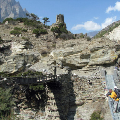 Kävelimme Annapurnan kierrosta yhden päivän verran eli Ngawalista Khangsariin. Seutu oli muuttunut aika tavalla 20 vuodessa. Slovenialaisten perustama vuorikiipeilykoulu oli paikallaan Humden länsipuolella. Aikanaan siinä toimi myös HRA:n klinikka ja informaatiopiste, mutta se oli jo siirretty Manangiin kun vierailimme siellä. Se on tehnyt tärkeää työtä, jotta retkeilijät ymmärtäisivät korkeuden merkityksen fysiologiaan. Tällä kertaa kiirehdin klinikkan ohi nettikahvilaan sähköpostin ja korvapuustin pariin.