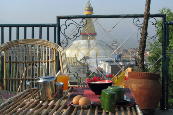 Katmandussa yövyin Boudhassa Valley Guesthouse -majatalossa, jota piti nepalilais-hollantilainen pariskunta. Hyvät olivat näkymät stupalle. Siellä oli Buddhan syntymäpäivänä iso tapahtuma, jossa oli tunnettu Rinpoche esiintymässä.