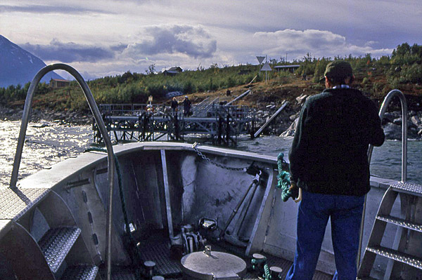 Yö vietettiin voimalaitoksen purkuaukon lähellä olevalla maankaatopaikalla. Aamiainen mysli, mustis, kahvi yms. Ajettiin ylös turistiasemalle ja katseltiin veneyhteyksiä: Ritsem-Änom 12.00 ja 15.00. Takaisin 13.40 ja 15.40. Viimeinen päivä kun Ritsemin ja Suorvan turistiasema ovat auki ja kun vene ja postiauto kulkevat, on 13.9., eli juuri ehditään. Hyvää onnea on matkassa. Täytyy muistaa kysyä ensi syksystä.