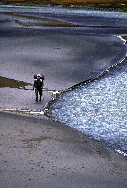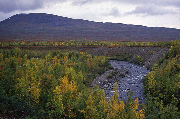 Käveltiin alas joelle, jonka yli kahlattiin mielenkiinnosta. Yllättävän lyhyt matka oli Suorvaan. Loppumatka oli tunturikoivikkoa ja suota, ja se tuntui aavan tunturimaaston jälkeen tuskalta.