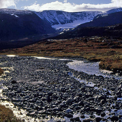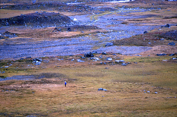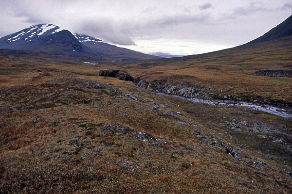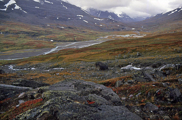 Reitti oli ihan mukavaa laaksoa kävellä. Mikkastuganin kohdalla ylitettiin joki kahlaamalla, missä oli tekemistä mun 40-saappailla. Lähellä oli, ettei hörpännyt. Tälle puolelle tultiin siksi, että jäätikkö on täällä.