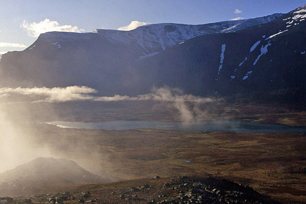 Oli tosi hienoja maisemia ja todellinen nautinto kävellä rauhallisesti. Bierikjavrrella kuultiin naalin (?) huutoa ja nähtiin kalasääsken kaartelevan yläpuolella.